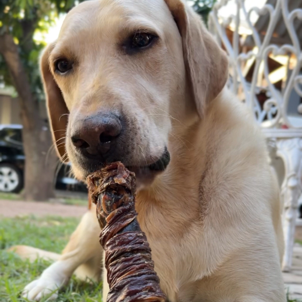 100% natural: feito apenas com couro e esôfago bovino, sem aditivos, conservantes ou corantes